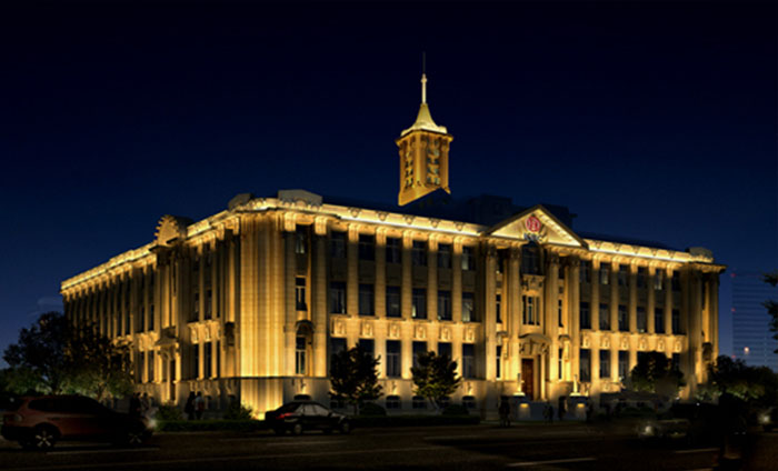 像眾所周知的中國古代建筑的大屋頂坡型物面在樓體夜景照明的表現上通常是一個比較難處理的部分,受面比較大的原因是一方面,另外一方面是如何個立面進行一個有機的結合,讓整體照明更具有觀賞性,更為協調統一。目前大部分的古代建筑夜景照明項目上都采用了泛光照明的方式,我們在上一期文章中就提及過泛光照明的手法,那這種照明方式能所面臨的問題是燈具的安裝位置和照明效果的理想程度。試想一下,如果將燈具安裝在建筑物的表面上,如果是小型的燈具還比較隱藏,可以不被人們所注意,但是如果照明對象是比較寬深的屋面上,可能就需要用大功率的燈具,一般來說大功率的燈具體量也很大,這不僅會影響建筑物的景觀完整,也有可能對建筑結構造成損毀。
