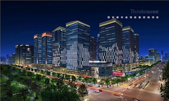 泰華·金貿(mào)國(guó)際位于西安高新區(qū)金融圈與商務(wù)圈的交匯地帶,與唐城墻遺址公園僅一路之隔。有西安首創(chuàng)山水云陶筑玻璃幕墻,高端商務(wù)會(huì)所,啟封現(xiàn)代商務(wù)的新風(fēng)范。信達(dá)電通根據(jù)辦公樓的戶外亮化照明設(shè)計(jì)要素和泰華·金貿(mào)國(guó)際建筑景觀特點(diǎn)以及所處的地理位置,對(duì)泰華·金貿(mào)國(guó)際進(jìn)行戶外亮化照明設(shè)計(jì)改造工作。改變了泰華·金貿(mào)國(guó)際之前的色系昏暗現(xiàn)狀,增加了建筑的外立面整體效果及廣告照明的效果,洗亮泰華·金貿(mào)國(guó)際建筑頂部,凸顯天際效果,使泰華·金貿(mào)國(guó)際成為西安夜色下一道亮麗的風(fēng)景。