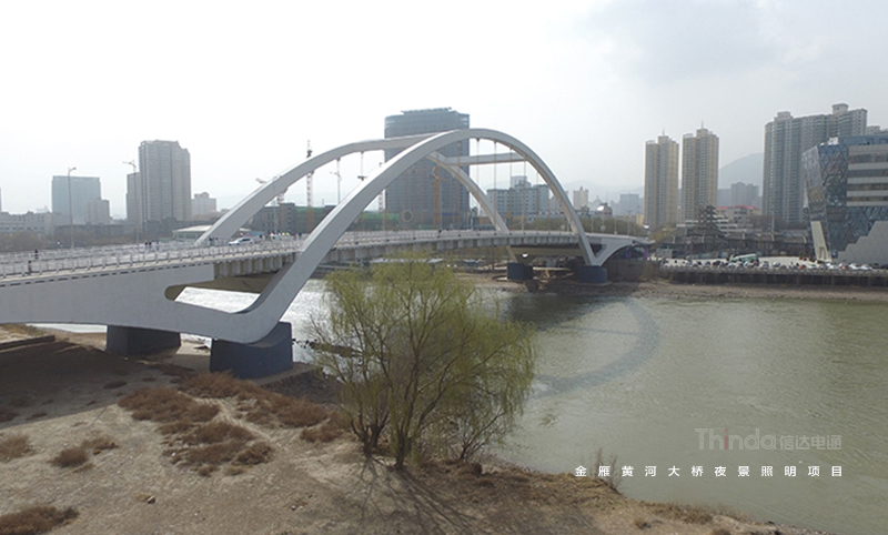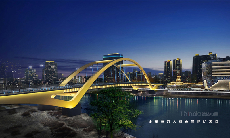 蘭州金雁黃河大橋全長六百多米,形似飄帶,信達在設計中選用黃色或淡藍色的簡約光色進行勾勒,使橋體的線條感在夜間更好的展示,在搭建智控時,信達根據(jù)設計效果選用穩(wěn)定、單一的控制。