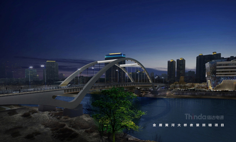 橋體整體為流暢的線條,我們在亮化設計中選用簡約光色勾勒橋體,用燈光來詮釋橋體的靈魂。光色上用黃色或者淡藍色,在照明時可以通過照明控制系統(tǒng)調試不同的展示效果,因為展示效果并不復雜,所以控制系統(tǒng)在功能的采用中選擇穩(wěn)定、控制效果單一的即可。
