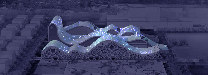 梵高的《星空》在建筑西立面的整體幕墻進行投影,充滿了運動和變化,從視覺上為每個少兒的心靈描繪出藝術的圣殿。