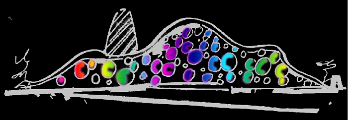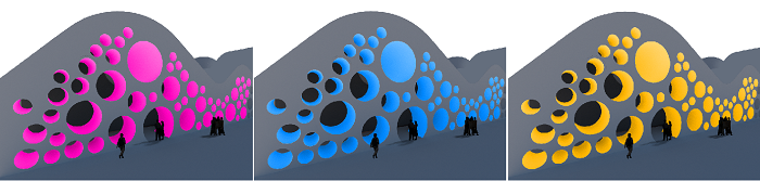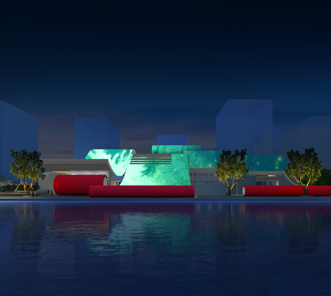 美術館整體建筑以多種圓形混搭繽紛色彩為基調并結合水系組成。信達電通以“色彩放飛心靈與夢想”為主題為美術館進行夜景亮化全過程服務,打造大西安地區全新文化地標的夜景魅力。
