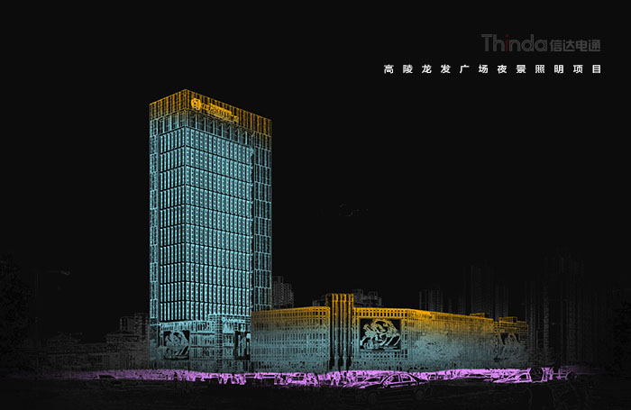 本著綠色照明的理念,信達電通設計了節日模式、平日模式、深夜模式三種方案,滿足不同時段廣場的不同照度需求。